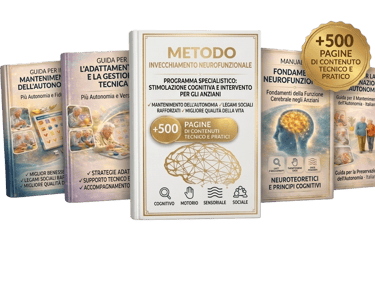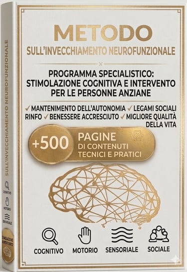 Più di 500 pagine di materiale tecnico d'eccellenza, completo di obiettivi clinici e aree stimolate. Un sistema che integra oltre 300 attività pratiche, minuziosamente organizzate per domini cognitivi e motori. Questa risorsa rappresenta la guida definitiva per il potenziamento della memoria, delle funzioni esecutive e della motricità fine, con un focus assoluto sull'autonomia funzionale. Concepito per un'applicazione quotidiana immediata, il metodo utilizza materiali semplici e un approccio profondamente umano, basato sulla valorizzazione della biografia dell'anziano.