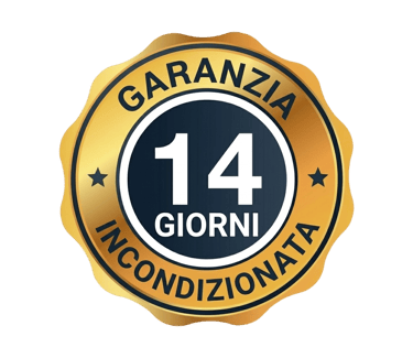 Se, per qualsiasi motivo, non dovessi essere soddisfatto del contenuto del materiale, ti restituiremo il 100% del tuo denaro. Hai 14 giorni di garanzia per accedere a tutti i contenuti, analizzarli e valutarli con calma.